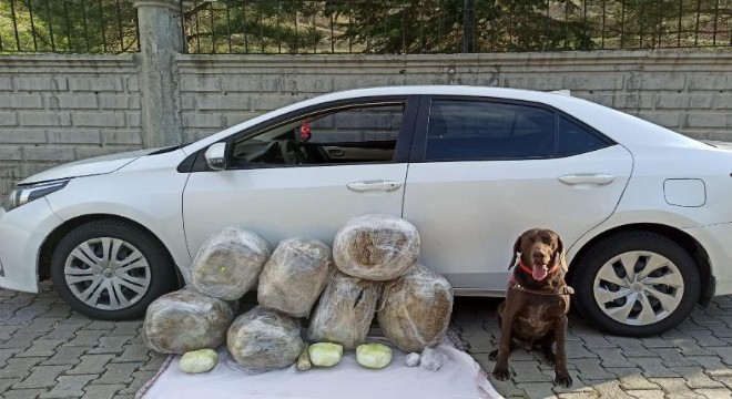 Elazığ'da jandarma ekiplerinin belirlediği bir şüphelinin aracında narkotik köpeği ile yaptığı aramada otomobilin altına zulalanmış şekilde 62 kilogram toz esrar ele geçirildi.
