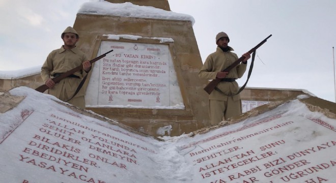 Sarıkamış Şehitlerini Anma Etkinlikleri kapsamında Allah-u Ekber Dağları’nda donarak şehit olan 90 bin Mehmetçiğin o dönemde yaşadığı zorlukları hissetmek adına öğrenciler eksi 20 derece soğukta temsili saygı nöbeti tuttu