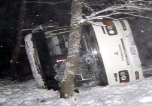 Servis aracı buzlu yolda refüjdeki ağaca çarparak durabildi