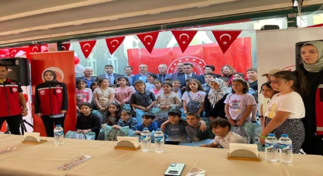 Konuşmaların ardından Okula Destek Projesi kapsamında sosyo-ekonomik destek alan ve beşinci sınıfa geçen 104 öğrenciye protokol tarafından okul eğitim setleri verildi.