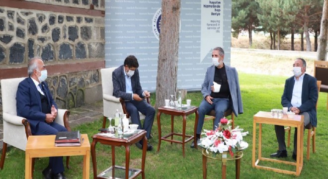 Konuklarını maske ve sosyal mesafe kullarına uygun olarak kampüs içerisinde yer alan Erzurum Evi bahçesinde ağırlayan Rektör Çomaklı, tebrik ziyaretine gelen Ağrı İbrahim Çeçen Üniversitesi Rektörü Prof. Dr. Abdulhalik Kababulut ve Kastamonu Üniversitesi eski Rektörü Prof. Dr. Seyit Aydın’ı misafir etti.