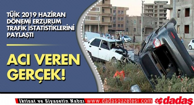 TÜİK verilerine göre Erzurum’da haziran ayında 141 ölüm ve yaralanmayla biten trafik kazası, 158 de maddi hasarlı kaza meydana geldi. Bu kazalarda 4 kişi yaşamını yitirdi, 317 kişi ise yaralandı. İlde Ocak-Haziran  ayları kapsamında ise 603 ölüm ve yaralanmayla biten trafik kazası, bin 10 da maddi hasarlı kaza oluştu. Bu kazalarda 13 kişi yaşamını kaybetti, bin 202 kişi ise yaralandı