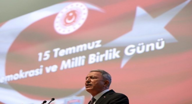 Çanakkale'de ve Milli mücadelede olduğu gibi egemenliği, bağımsızlığı, Milli ve manevi değerleri uğruna hiçbir fedakarlıktan kaçınmayan asil Türk milletinin 15 Temmuz’da gösterdiği cesaret, fedakarlık ve kahramanlığın yeni bir diriliş destanı olarak tarihe altın harflerle yazıldığını bildiren Bakan Akar, "Milletimiz 15 Temmuz’da egemenliğin kayıtsız, şartsız millete ait olduğunu, Milli iradeye kimsenin ipotek koyamayacağını tüm dünyaya bir kez daha göstermiştir" şeklinde konuştu.