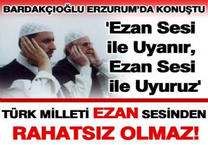 Türk halkının ezan sesini tartışma konusu yapmayacağını vurgulayan Diyanet İşleri Başkanı Ali Bardakoğlu, "Milletimiz ezan sesi ile uyur, ezan sesi ie uyanırız. Biz herkesin mutlu olacağı, herkesin ahenkle dinleyeceği bir ezanın okunması gayreti içerisindeyiz" dedi.