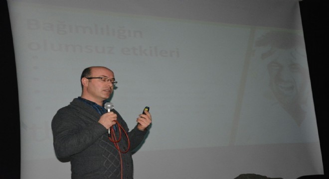 Arif Aslan, konuşmasında, “Bağımlılığı tehlikeli kullanımdan ayırmak gerekir. Tehlikeli kullanım, madde kullanımının kişinin kendine hayatına ve çevresine zarar vermesidir. Bunlar içinde çeşitli zararlar sayılabilir. Madde kullanımına bağlı olarak kişi işine gitmez, okula devam etmez, işinde başarısızlıklar ortaya çıkar, ailesini ve çocuklarını ihmal eder ya da bedeninde fiziksel bozulmalar olur. Madde kullanımı nedeni ile tartışma, kavga gibi yineleyen kişilerarası ve toplumsal sorunlar, madde taşımak ve bulundurmak ya da madde etkisi ile gelişen davranış bozuklukları dolayısıyla yasal sorunlar ortaya çıkabilir. Bağımlılık bir süreç içinde gelişir. Kişi önce maddeyi dener. Ardından düzenli kullanmaya başlar. Onunda kişide bağımlılık gelişir. Bu nedenle her madde kullanan kişiyi bağımlı olarak adlandırmak yanlış olacaktır. Bağımlıların büyük çoğunluğu kontrol edebileceği inancı ile madde kullanmaya başlar. Hiçbir zaman bağımlı olabileceğini düşünmez. Amaç ara sıra kullanmaktır. Ancak sonuçta kişi bağımlı hale gelir. Çünkü, bağımlılık madde kullanımının kaçınılmaz sonucudur. Kişi bağımlı olduğunun farkına varamaz. Hayatta her nesne bağımlılığa yol açabilir. İnsan herhangi bir maddeye bağımlı hale gelebilir. Her şeyin bağımlılık riski vardır. Ancak bazı maddelerin bağımlılık potansiyeli daha yüksektir. İşte bu bağımlılık potansiyeli yüksek olan maddelere insanlar daha kolay ve sık olarak bağımlı olmaktadır. Kişi madde kullanmaya başladıktan ne kadar sonra bağımlılık gelişeceğine ilişkin yeterli veri elimizde yoktur. Bağımlılık gelişme riski kullanılan madde cinsine, maddenin saflığına, kullanılan kişinin fiziksel ve ruhsal yapısına göre değişir. İnsan bir kez bağımlı oldu mu artık bir daha tam olarak bu bağımlılıktan kurtulamaz.” diye konuştu.