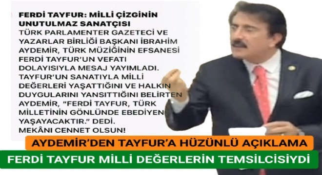 Türk Parlamenter Gazeteci ve Yazarlar Birliği Başkanı İbrahim Aydemir, Türk müziğinin unutulmaz ismi Ferdi Tayfur’un vefatı dolayısıyla bir mesaj yayımladı.