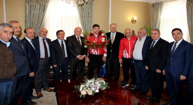 Macaristan’da düzenlenen Avrupa Güreş Şampiyonası’nda 86 kiloda Avrupa şampiyonu olan Murat Ertürk, Erzurum Valisi Seyfettin Azizoğlu’nu ziyaret etti.