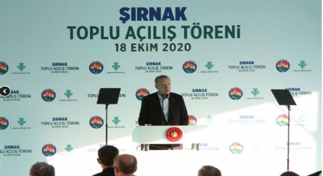 Cumhurbaşkanı Recep Tayyip Erdoğan Şırnak’ta toplu açılış törenine katıldı. 3.5 milyar liralık 591 projenin hayata geçirildiği açılış töreninde konuşan Erdoğan, “Biz milletimize efendi olmak için değil, hizmetkar olmaya geldik. Bizim siyaset anlayışımızda partizanlık, insanları etnik kökenlerine, inançlarına göre tasnif etmek yoktur. Biz hizmet götürürken aldığımız oy oranına değil, ihtiyaca bakarız” dedi.