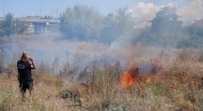 Erzurum’da boş alanda meydana gelen ot yangını bir anda her tarafın alev sarmasına neden oldu.