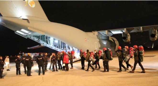 Erzurum Büyükşehir Belediye Başkanı Mehmet Sekmen’in talimatıyla Büyükşehir Belediyesi İtfaiye Daire Başkanlığı bünyesindeki arama ve kurtarma timi, Erzurum Askeri Havaalanı’ndan askeri kargo uçağıyla deprem bölgesine özel kurtarma araç ve teçhizatlarıyla birlikte hareket etti.