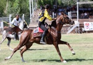 Bitlis’in Ahlat ilçesinde bu yıl 22’ncisi düzenlenen Ahlat-Avrasya Kültür Buluşması Şenlikleri kapsamında düzenlenen cirit yarışmaları büyük bir heyecanla izlenirken, Ahlat Belediye Başkanı ise atın üzerinde basın açıklaması yaptı.