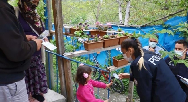 Uzundere ilçesinde polisler kapanmadan dolayı evlerinden çıkamayan ve okullarına gidemeyen çocuklar için köy köy dolaşıp miniklere teker teker kitap dağıttı.