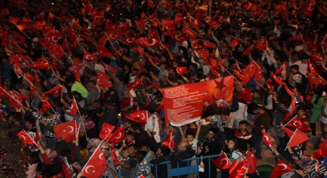 Erzurum’da 15 Temmuz Demokrasi ve Milli Birlik Günü dolayısıyla binlerce vatandaş ellerinde Türk bayraklarıyla demokrasi nöbetini tuttu