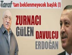 Adı Gülen'in gazetesine çıkan yandaş medya tanımlaması içinde yer alan Taraf gazetesi kendisinden hiç beklenmeyecek bir başlık attı. Taraf yazarı Sivilay Abla'nın köşesinin başlığı bugün DAVULCU ERDOĞAN ZURNACI GÜLEN'di..