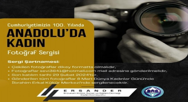 Erzurum Kültür, Sanat Eğitim Derneği (ERSANDER) tarafından ‘Anadolu’da Kadın’ konulu fotoğraf sergisi açılacak.
