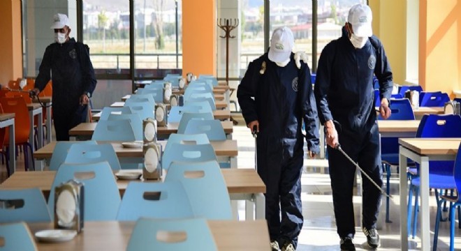 Covid-19 pandemisi nedeniyle bir buçuk yıldır ara verilen yüz yüze eğitime 27 Eylül itibariyle başlayacak olan ETÜ, öğrencilerin ve personelin sıklıkla kullandığı alanlarda salgın tedbirlerini arttırdı. Bu kapsamda Erzurum Yakutiye Belediyesi dezenfektan ekibinin desteğiyle derslikler, laboratuvarlar, kütüphaneler, kantinler, yemekhaneler ve dinlenme salonları gibi toplu kullanım alanları dezenfekte edilerek insan sağlığına uygun hale getirildi.