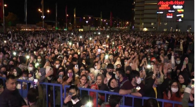 Erzurum’da konser veren ünlü şarkıcı Ekin Uzunlar, şarkılarıyla gençleri coşturdu. Konserde maske takmayan çok sayıda genç mesafe kuralına da uymadı.