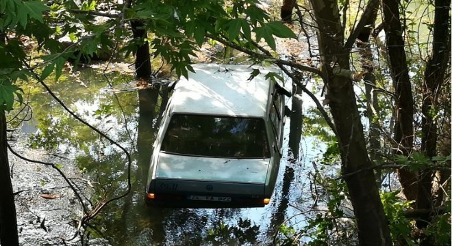 El freni çekilmeyen otomobil dereye uçtu