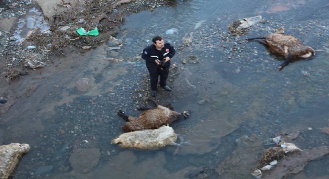 Erzurum’un Oltu ilçesinde dereye atılan koyunlar mahalle sakinlerinin tepkisine neden oldu.