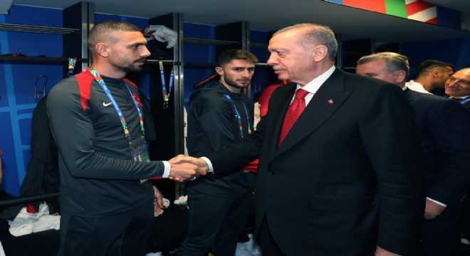 Türkiye-Hollanda maçını stadyumda izleyen Cumhurbaşkanı Recep Tayyip Erdoğan, karşılaşmanın ardından soyunma odasına inerek milli futbolcuları tebrik etti.