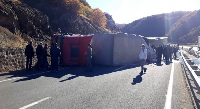 Erzincan yolunda tır devrildi, yol ulaşıma kapandı