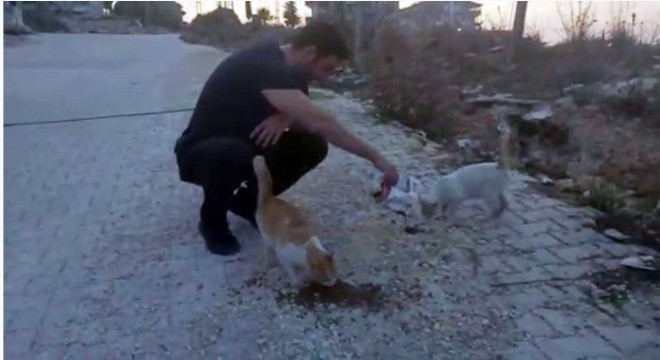 Erzurum Valiliği, Hatay'da depremden etkilenen sokak hayvanlarını unutmadı. Valilik çalışanları, sokaktaki kedi ve köpeklere mama dağıttı.