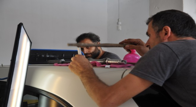 Erzurum’dan gelen kaporta ustası Özkan Barakhanlı,"Öncelikle Erbaa halkına çok geçmiş olsun dolu yağmış doluları biz gidermek için Erzurum’dan geldik. Araçların orjinalliklerini koruma amaçlı yapıyoruz. Farklı denk çubuklarımız var bizim araçların girmeyen bölgelerine girmesi için onlarla gidermeye çalışıyoruz. Orjinalliğini bozmadan artı sıcak silikon dediğimiz vakum olayı var onlarla da çalışıyoruz. Orijinalliğini bozmadan iyi bir işçilik yapmaya çalışıyoruz" dedi.