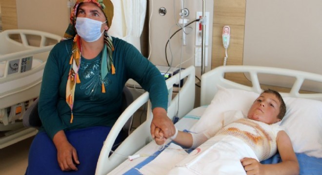 Çocuğunun hayatını kurtaran anne Sönmez, durumu 112 Acil Sağlık ekibine bildirdi. Olay yerine gelen ekipler küçük Fatih’i Ardahan Devlet Hastanesi’ne götürdü. Burada yapılan ilk müdahalenin ardından Fatih Sönmez, Erzurum Şehir Hastanesi’ne sevk edilerek tedavi altına alındı. Küçük çocuğun çene ve göğsünde ikinci dereceden yanıklar oluştuğu belirtildi.