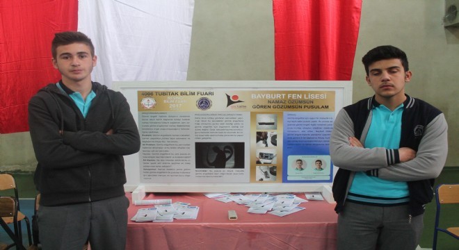 Bayburt'ta Fen Lisesi öğrencileri TÜBİTAK Bilim Fuarı kapsamında görme engelliler için namaz pusulası icat ettiler.