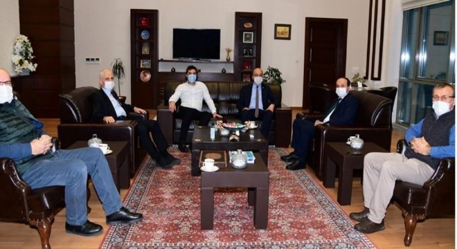 Gümüşhane Üniversitesi Rektörü Prof. Dr. Halil İbrahim Zeybek, beraberindeki heyet ile ETÜ Rektörü Prof. Dr. Bülent Çakmak'ı makamında ziyaret etti.