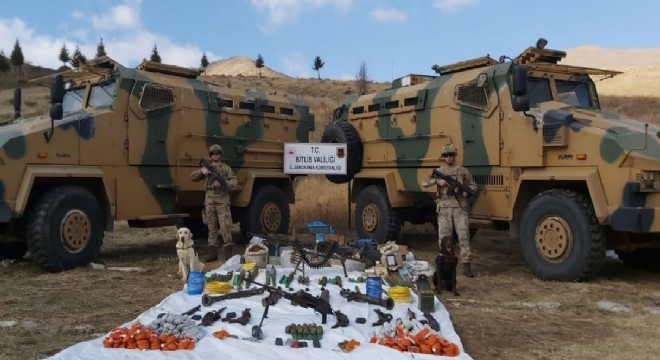 Bitlis'te "Yıldırım-16 Sehi Ormanları Operasyonu"nda çok sayıda El Yapımı Patlayıcı (EYP), silah, mühimmat ve yaşam malzemesi ele geçirildi.