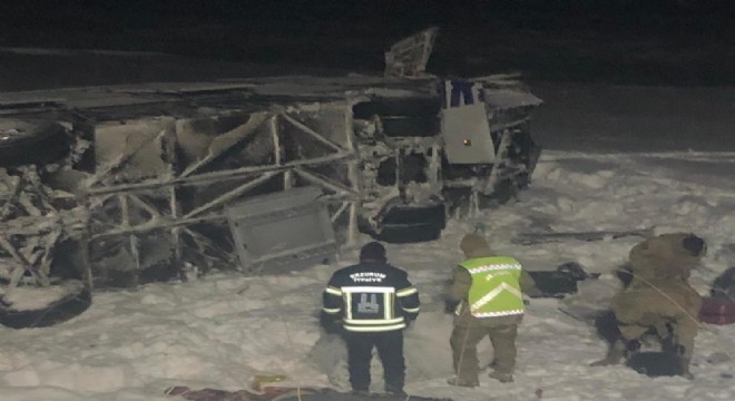 Horasan ilçesinde yolcu otobüsünün devrilmesi sonucu 38 kişi yaralandı.