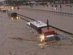 Yolu sel bastı, sürücüler araçlarının üzerine çıkıp hayatta kalmaya çalışıyor.