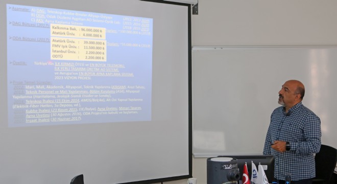 Hazırladığı görsel sunum eşliğinde yaptığı sunumla DAG’ın kuruluşundan, şu ana kadar gelinen aşamaları detaylı bir şekilde aktaran Yeşilyaprak, gözlemevinin getirileri ve ülkemize ne gibi katkılar yapacağından bahsetti. Sunumu ilgiyle takip eden Taşkesenlioğlu ise merak ettiği genel ve teknik konuları Yeşilyaprak’a sordu.