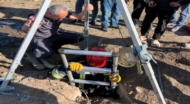 Erzurum'da itfaiye ekipleri su kuyusuna düşen koyunu kurtararak sahibine teslim etti.