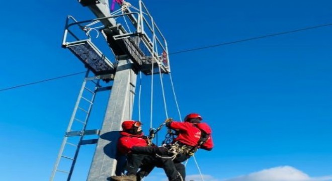 Özel arama kurtarma (JAK) timleri hazırlık eğitimleri kapsamındaki senaryoya göre telesiyejde mahsur kalan vatandaşı başarılı bir şekilde kurtardı.