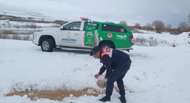 Kar yağışının etkili olduğu Erzurum’da Jandarma ekipleri yaban hayatı unutmadı.