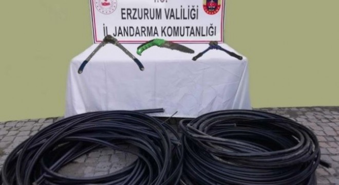 Tortum ilçesinde haberleşme ve enerji nakil kablolarını çalan 4 kişi suçüstü yakalandı.