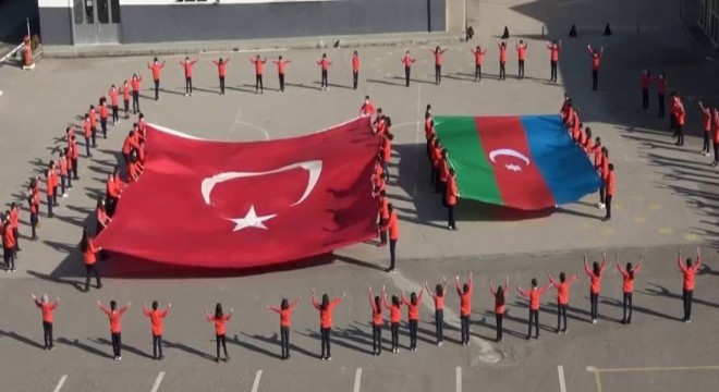 Dağlık Karabağ'da büyük bir zafer elde eden Azerbaycan'ın zafer sevincini Atatürk Üniversitesi vakıf okulu öğrencileri de öğretmenleri ile birlikte hazırladıkları gösteri ile kutladı.