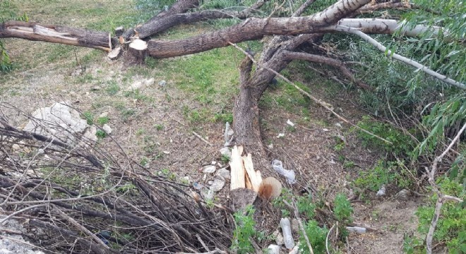 Karasu nehri çevresinde bulunan ormanda, kesilip olduğu yerde kurumaya bırakılan ağaçlar bazı vatandaşların tepkisini çekti.