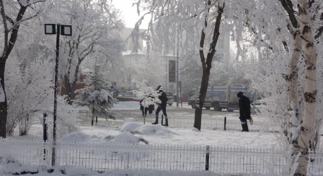 Kırağı tutan ağaçlar kartpostallık görüntüler oluştururken, ilçede hava sıcaklığı eksi 20 dereceye kadar düştü.