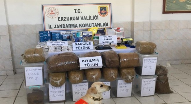 Oltu Cumhuriyet Başsavcılığı koordinesinde Erzurum İl Jandarma Komutanlığı KOM Şube Müdürlüğü ve Narman İlçe Jandarma Komutanlığı unsurlarınca kaçakçılıkla mücadele kapsamında Narman ilçesinde ikamet eden bir şahsın kaçak tütün ve sigara sattığı belirlendi. Oltu Cumhuriyet Başsavcılığından alınan arama kararına istinaden şüpheli şahsın evinde ve iş yerinde yapılan aramada 93 kilogram kıyılmış sarmalık tütün, 7 bin 520 adet doldurulmuş makaron, 110 karton içi boş makaron, 96 paket nargile tütünü, 6 adet sigara sarma makinesi, 2 adet sigara doldurma aparatı ele geçirildi. Gözaltına alınan şüpheli adli makamlara sevk edildi.