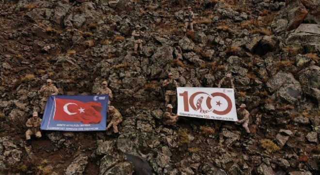 Bitlis'teki güvenlik korucuları, Cumhuriyet'in 100. yılını 2 bin 800 rakımdaki Nemrut Kalderası zirvesinde kutladı.