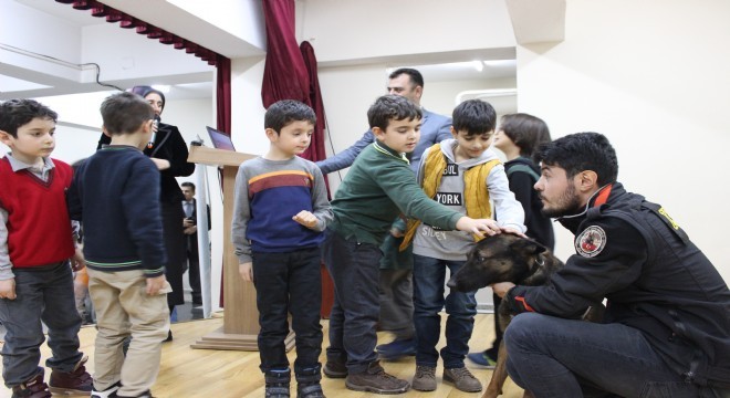 Erzincan Bilim Sanat Merkezi Müdürü Yıldız Ertunç, Erzincan İl Emniyet Müdürlüğüne bağlı Narkotik Suçlarla Mücadele Şube Müdürlüğü ekiplerinden Odin’in eğitmeni polis memuru Muhammet Oğuz Alan, öğretmenler, öğrenciler ve velilerin katıldığı programda narkotik dedektör köpeği “Odin’in” sahada gerçekleştirmiş olduğu başarılı çalışmalar, Erzincan Bilim Sanat Merkezi’nde öğrenim gören çocuklara aktarıldı.