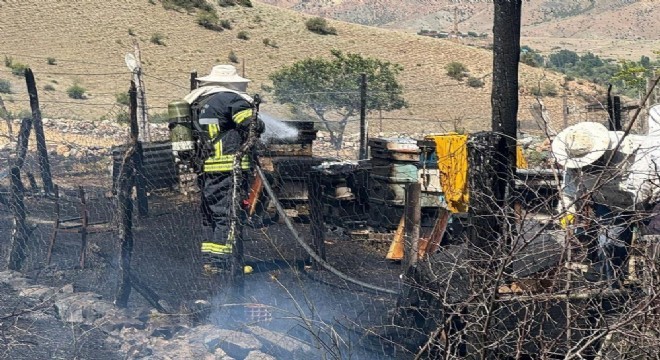 Erzurum’da meydana gelen yangında arı kovanları yandı.