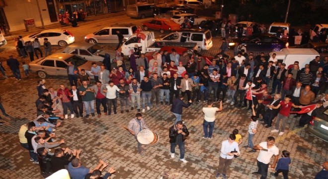 Davul zurna ve meşalelerin yandığı kutlama töreninde araçlarla uzun konvoylar oluşturuldu. Otomobillerin camlarından çıkan vatandaşlar Cumhurbaşkanı Recep Tayyip Erdoğan ve Cumhur İttifakı’nın zaferini kutladı.