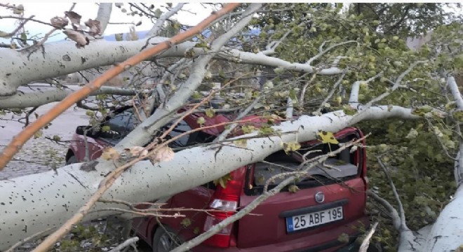 Oltu ilçesinde seyir halinde olan otomobilin üzerine kesilen kavak ağacı düştü.