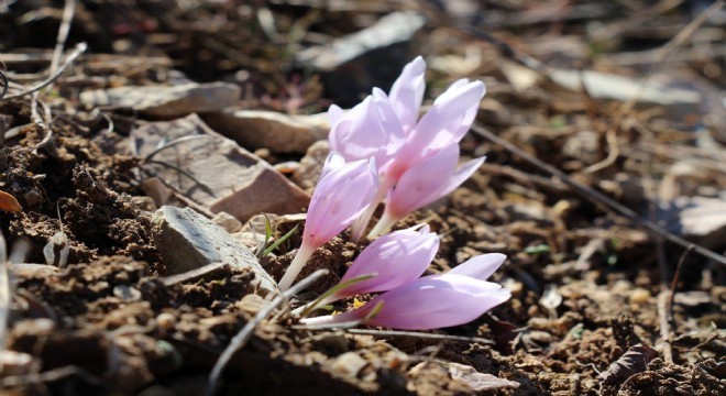 Erzurum'da kış şiddetiyle sürerken, bir ucunda baharın müjdecisi kar çiçekleri açtı.