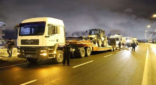Erzurum Palandöken Belediyesi deprem bölgesinde kullanılmak üzere iş makinası ve ekipman gönderdi.