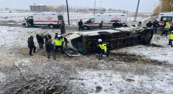 Muş'ta devrilen servis minibüsündeki sürücü ile 15 öğretmen yaralandı.